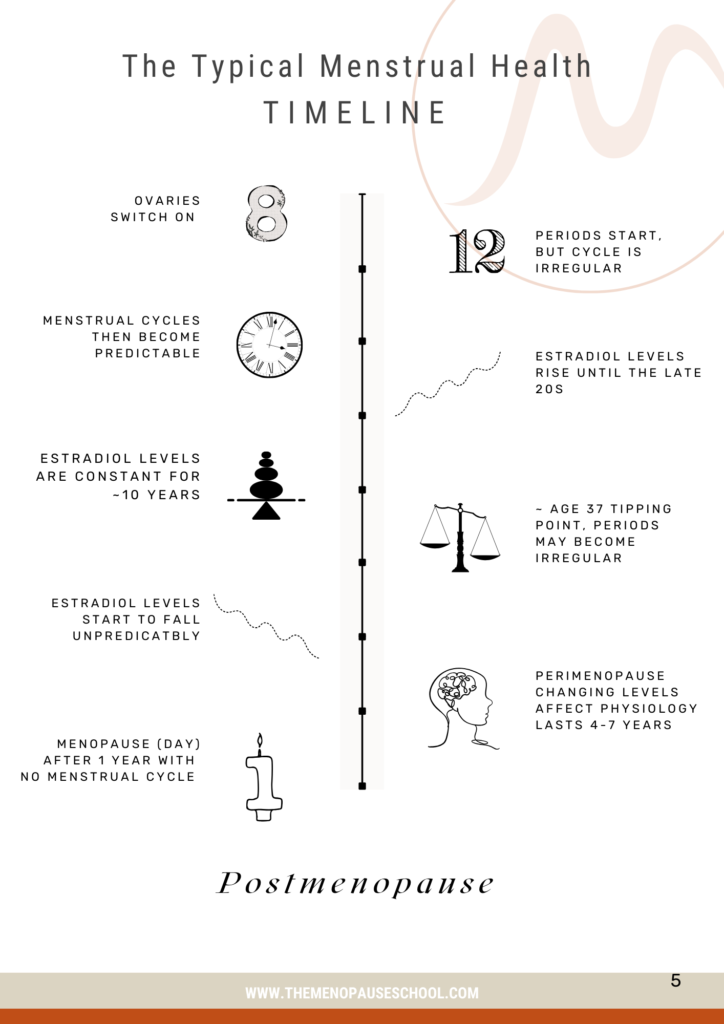 From the point of ovaries switching on, to switching off, is medically defined as reproductive aging. I don’t like that term because it places the role of the ovaries and uterus exclusively in the reproductive system category. What if you don’t want to reproduce or find yourself unable to, does that mean they have no importance? I have chosen to use the term the menstrual health timeline to reflect a journey that links, menstrual health and ovarian aging, to overall health and well-being.